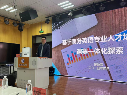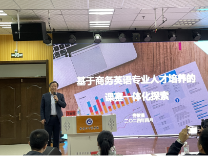 讲座中,佟敏强教授首先讲解了课赛一体化的发展现状以及专业人才培养的现实需求,强调了全国商务英语实践技能大赛对激发员工的创新意识和实践能力的重要意义。佟教授从课赛一体化的角度,介绍了全国商务英语实践技能大赛,强调比赛内容的选择应基于现在时代发展趋势、技术前沿与团队特长相结合的策略,他鼓励员工和老师多参加比赛,从比赛中发现问题,在比赛中成长。最后,佟教授分享了参赛作品的优化方法。在场师生纷纷表示受益匪浅。