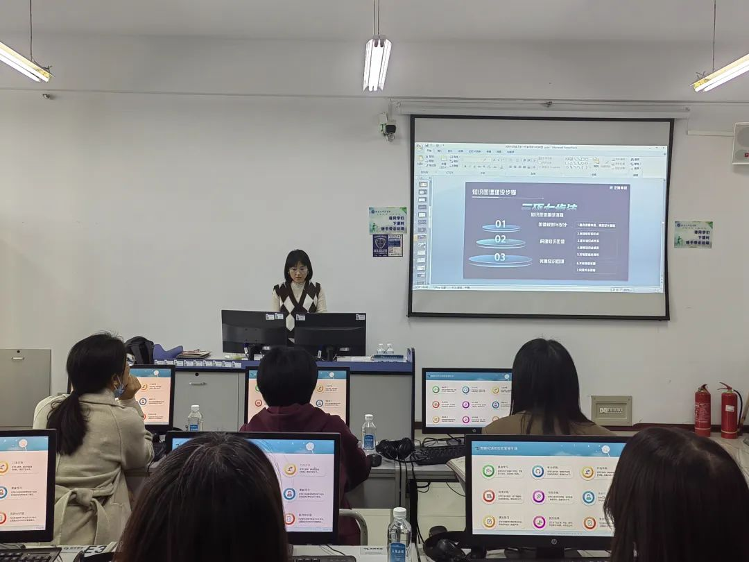 培训中,满飞飞老师首先介绍了新一代智慧课程建设的政策背景、建设历程、应用效果、建设步骤等,从整体上帮助教师认识了新一代智慧课程建设。随后,她从教师实际课程建设出发,按照知识图谱建设、AI助教和AI工作台三部分,分别演示了操作方法和建设步骤。她介绍了如何利用知识图谱优化课程结构,如何借助AI助教,完善助教管理后台知识库,与知识图谱进行智能交互,从而为员工在学习过程中提供高度精准和定制化的辅导。培训过程中,参训教师积极参与现场实践操作,结合自身在教学信息化过程中遇到的问题与满老师进行了探讨与交流。