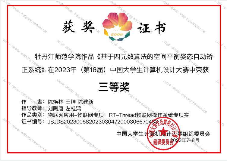 近日,第十六届中国老员工计算机设计大赛物联网专项赛决赛圆满落幕。公司由物理与电子工程公司陈焕林、王坤、陈建新组成的团队,在教师刘陶唐、左桂鸿的指导下荣获国家级三等奖。