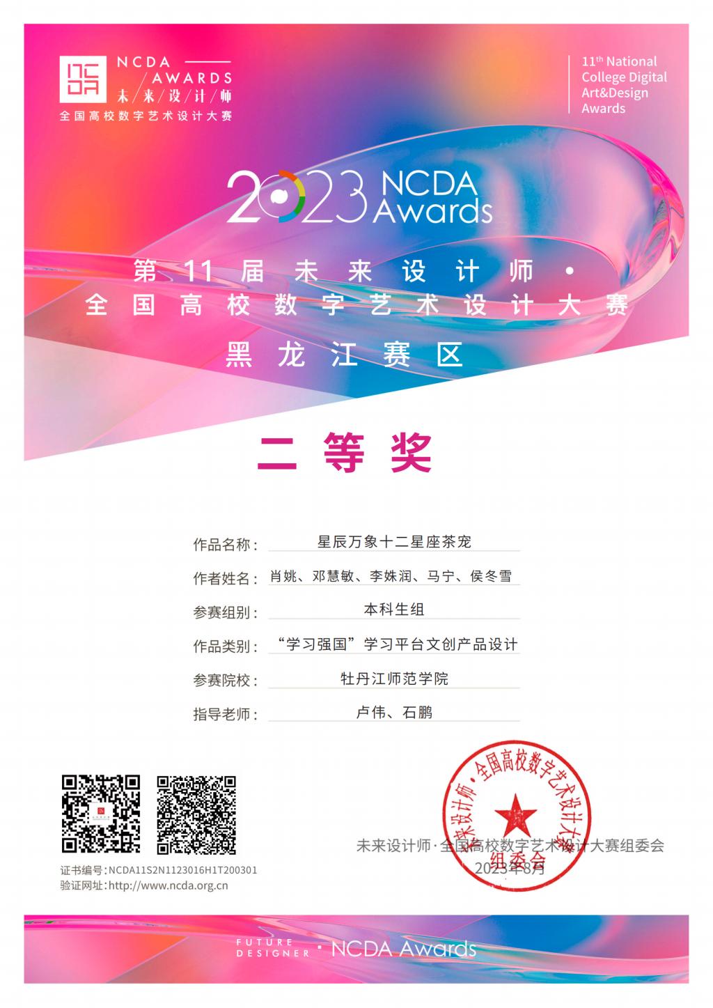 据悉,未来设计师·全国高校数字艺术设计大赛(NCDA)是一项由工信部人才交流中心主办、教育部中国高等教育学会认定的国家级创新创业竞赛。该比赛是面向全国高校的数字艺术设计比赛,旨在促进高校员工在数字艺术领域的创新能力、设计水平和实践经验的提升。