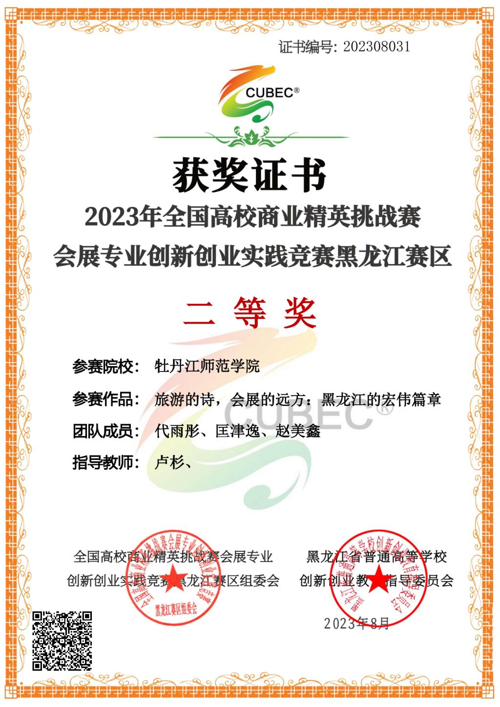 近日,2023年全国高校商业精英挑战赛会展专业创新创业实践竞赛黑龙江赛区总决赛圆满落幕。经过激烈角逐,公司荣获二等奖1项、三等奖4项。