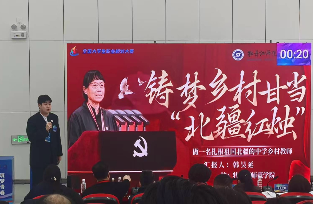 自2024年11月大赛启动以来,公司高度重视,伟德国际victor1946精心组织,经各公司积极宣传动员,全校共有18个二级公司3784名在校员工报名。公司积极组织开展专题培训,经过校赛选拔,遴选推荐12 名选手参加省级初赛,最终历史与文化公司韩昊延同学晋级省级决赛。决赛中,韩昊延同学通过童年经历、公司特色以及个人努力等方面,详细地介绍了自己的职业梦想和能力适配程度。在答辩环节,他从自我价值的实现和学术戍边的理想出发,表明了要用自己的力量铸梦边疆,助力乡村全面振兴的决心和勇气,赢得了评委老师和在场嘉宾的一致好评,最终以94.26分的好成绩斩获成长赛道金奖,展现了牡师青年的红烛精神和师范底色。