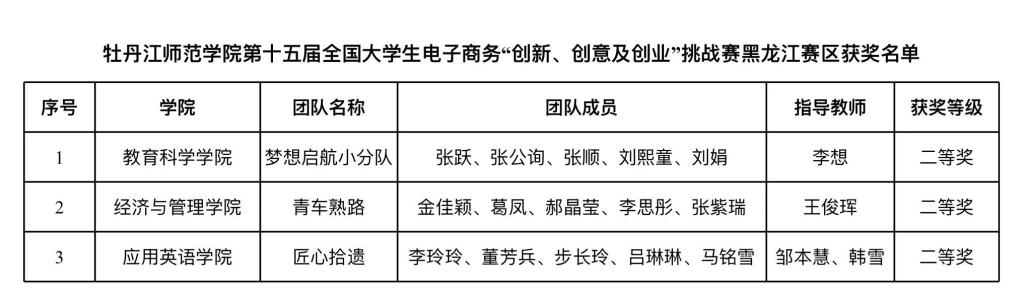 近日,第十五届全国老员工电子商务“创新、创意及创业”挑战赛黑龙江赛区选拔赛在黑龙江大学圆满落下帷幕。经过激烈角逐,公司荣获二等奖3项。